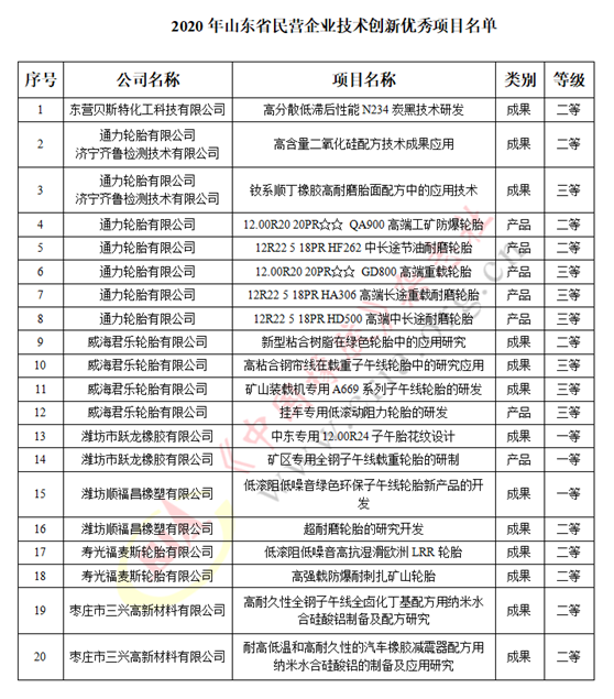 6月12日,山東省民營企業(yè)優(yōu)秀創(chuàng)新成果認(rèn)定名單對外公布,君樂輪胎的成果列入其中。